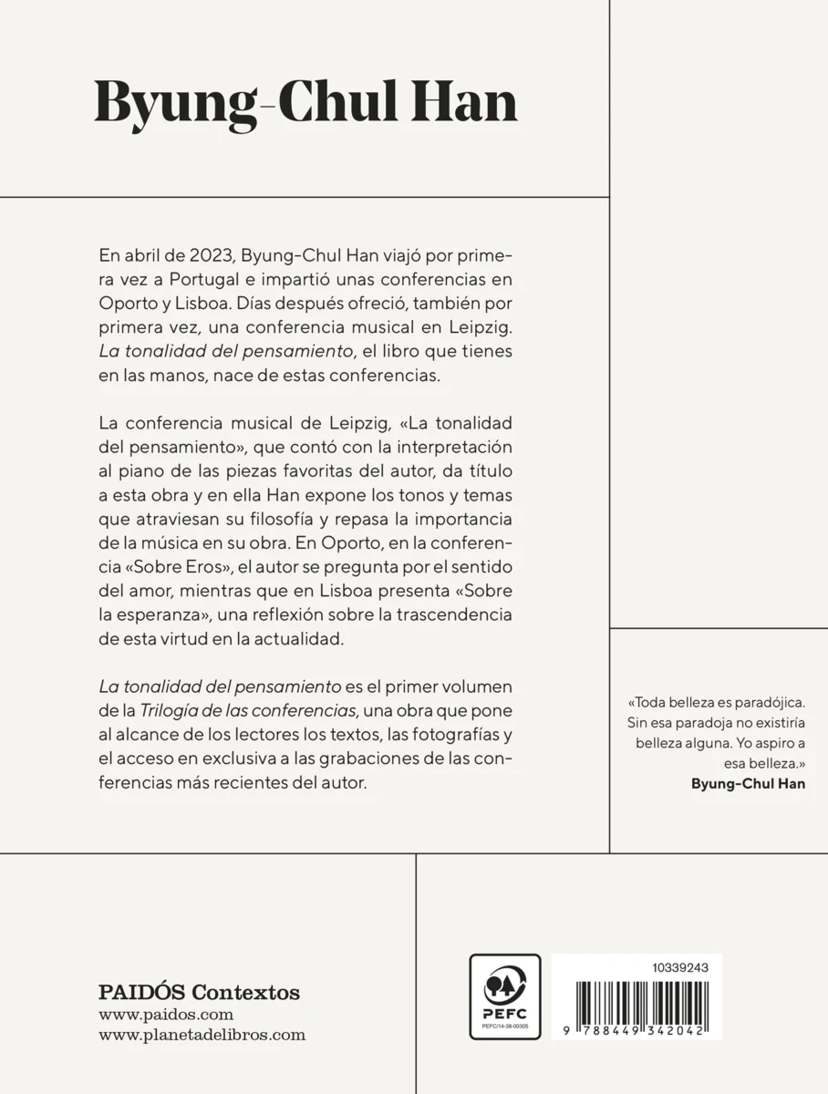PREMIO PRINCESA DE ASTURIAS DE COMUNICACIÓN Y HUMANIDADES 2025 Byung-Chul Han, el filósofo contemporáneo más conocido de la actualidad y uno de los más leídos en el mundo, publica con Paidós La tonalidad del pensamiento.