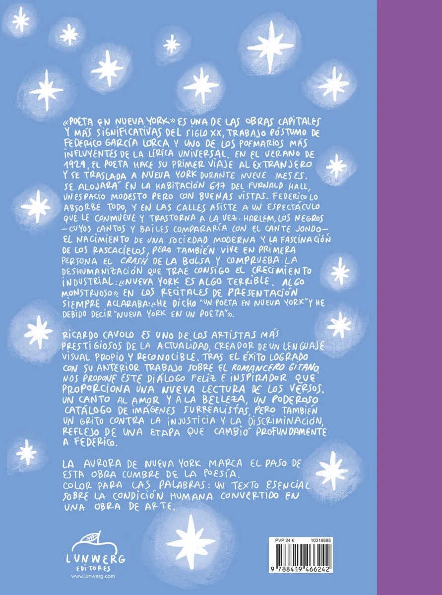 Poeta en Nueva York es la culminación de la poesía de Federico García Lorca. Un clásico indiscutible del poeta español más universal reinterpretado con las ilustraciones tan características del gran Ricardo Cavolo.