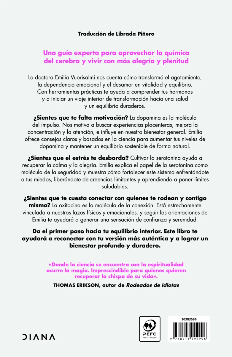 Una guía revolucionaria y profundamente transformadora para aprender a vivir en sintonía con tus tres grandes hormonas del bienestar (dopamina, serotonina y oxitocina) y crear una vida más libre, vital y auténtica desde dentro.